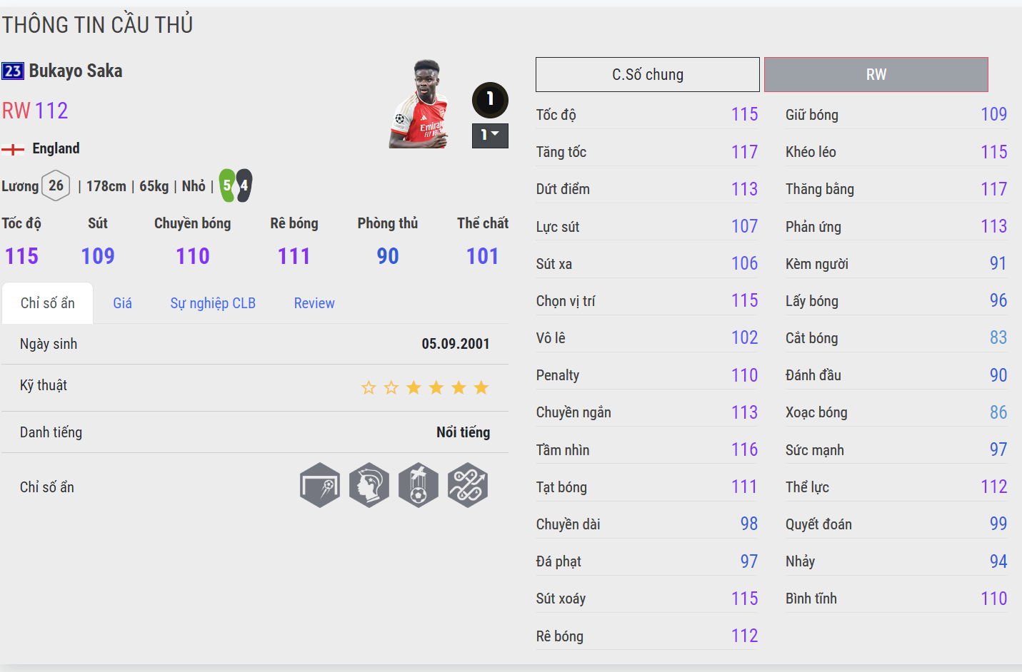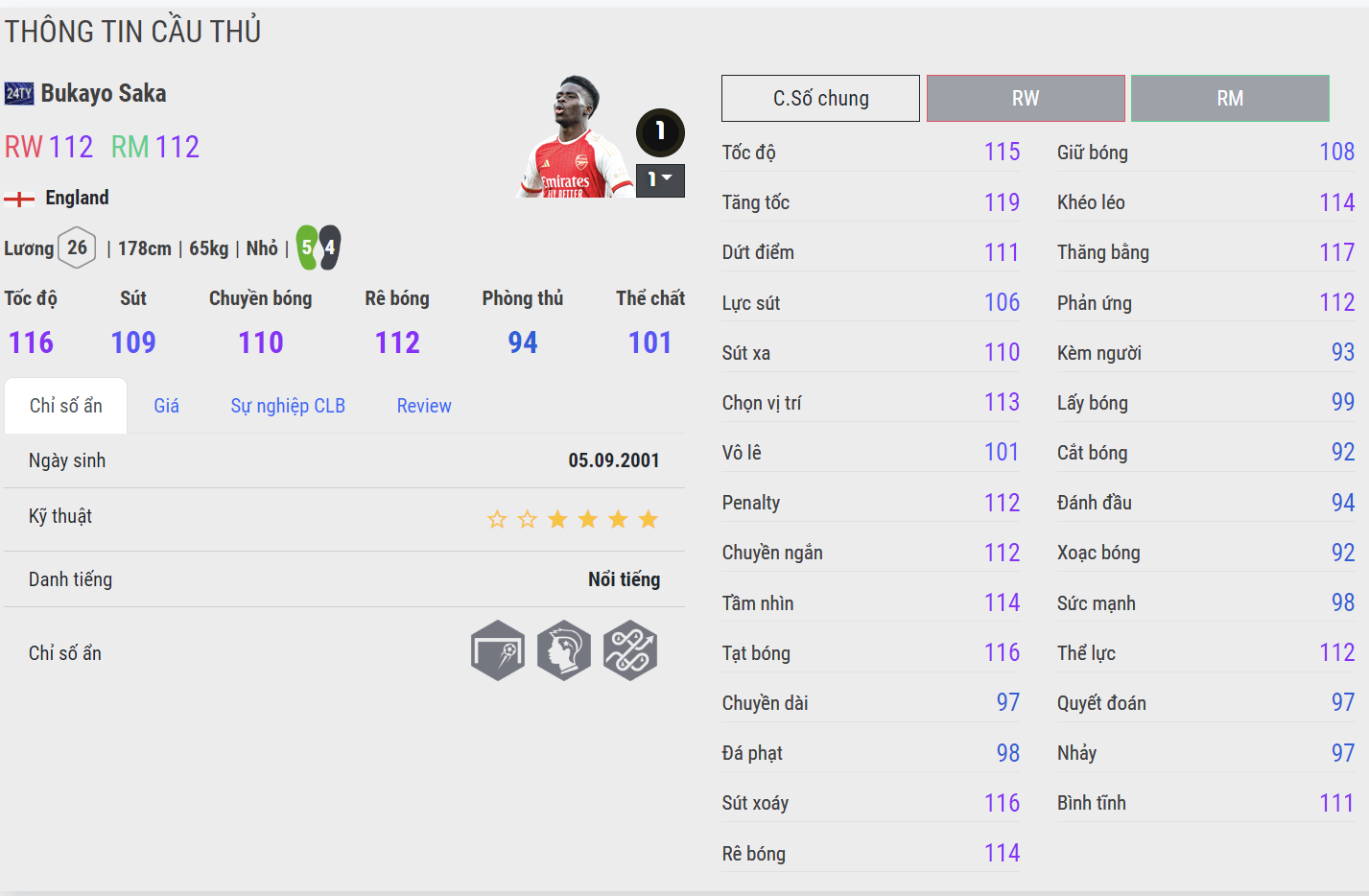 Saka được rất nhiều game thủ quan tâm săn đón không chỉ bới phong độ ngoài đời mà còn là ở khả năng thể hiện trong FC Online cũng cho thấy giá trị sử dụng rất tốt. Đặc biệt là với những fan Arsenal muốn xây dựng team color đương đại để tối ưu hiệu quả.