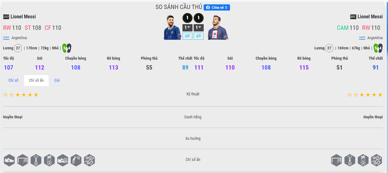 Nhưng mùa giải 22TY thì lại khác, bạn hoàn toàn có thể đưa M10 lên đá CF hay ST như một tay săn bàn thực thụ bởi khả năng chạy chỗ có phần nhình hơn hẳn so với bản BWC. Hai mùa có cùng mức lương và Ovr tuy nhiên giá tiền sẽ có sự khác biệt do mùa 22TY đã limit. Điều này sẽ yêu cầu bạn cần cân nhắc kỹ trước khi mua sắm cho mình.