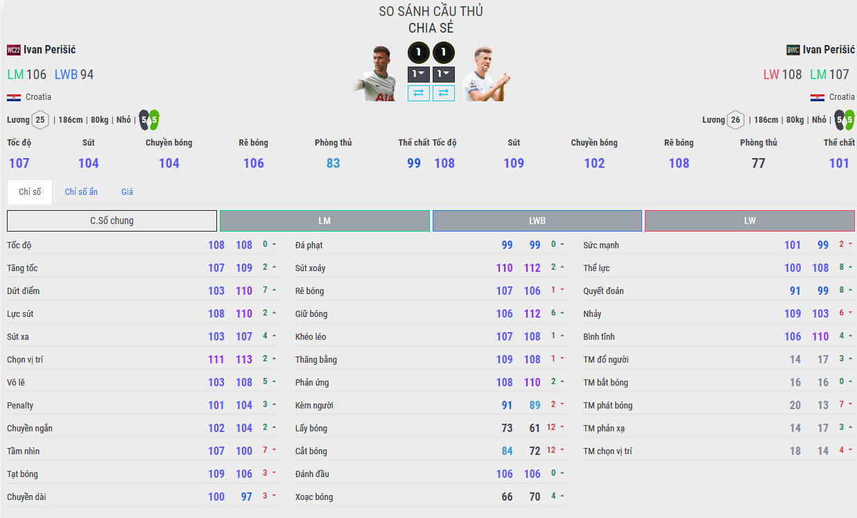Mùa BWC khỏe hơn, tranh chấp nhiệt hơn. Nhưng chung quy vẫn cứ là yếu với mặt bằng chung trong game. Vậy nên bạn vẫn nên hạn chế việc dùng sức để chơi Perisic. Hãy sử dụng AI của anh này để thoát pressing hay thoát xuống cánh.
