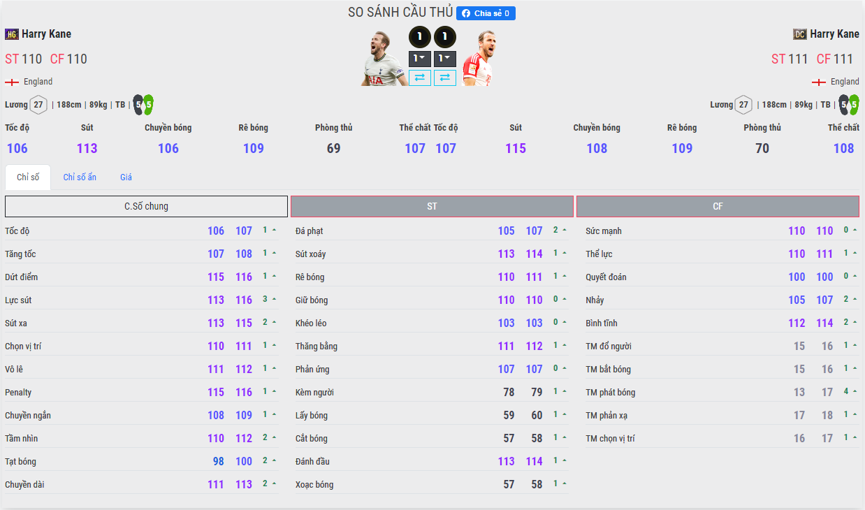 Có cùng chỉ số ẩn nhưng khi đưa vào thi đấu và thống kê các tình huống dứt điểm thì bạn sẽ thấy rằng tỷ lệ thành bàn của Kane DC tốt hơn, nói như vậy không có nghĩa là mùa HG đã kém đi, Kane HG vẫn rất tốt, chỉ là các tình huống dứt điểm trong vòng cấm của Kane DC cảm giác sắc bén hơn.