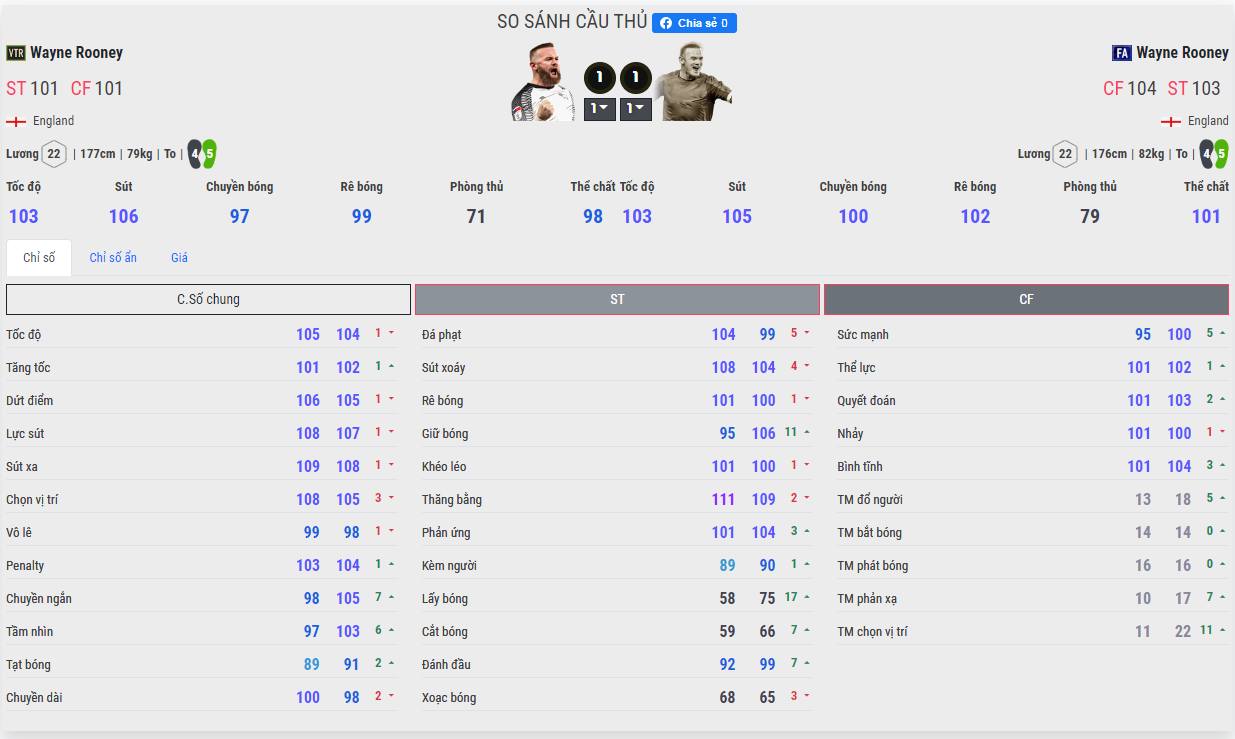 1. Tốc độ : Mùa VTR và FA không có sự khác nhau mấy về tốc độ trên thẻ, nên vấn đề này các bạn có thể an tâm là tốc độ của Rooney gần như không thay đổi.