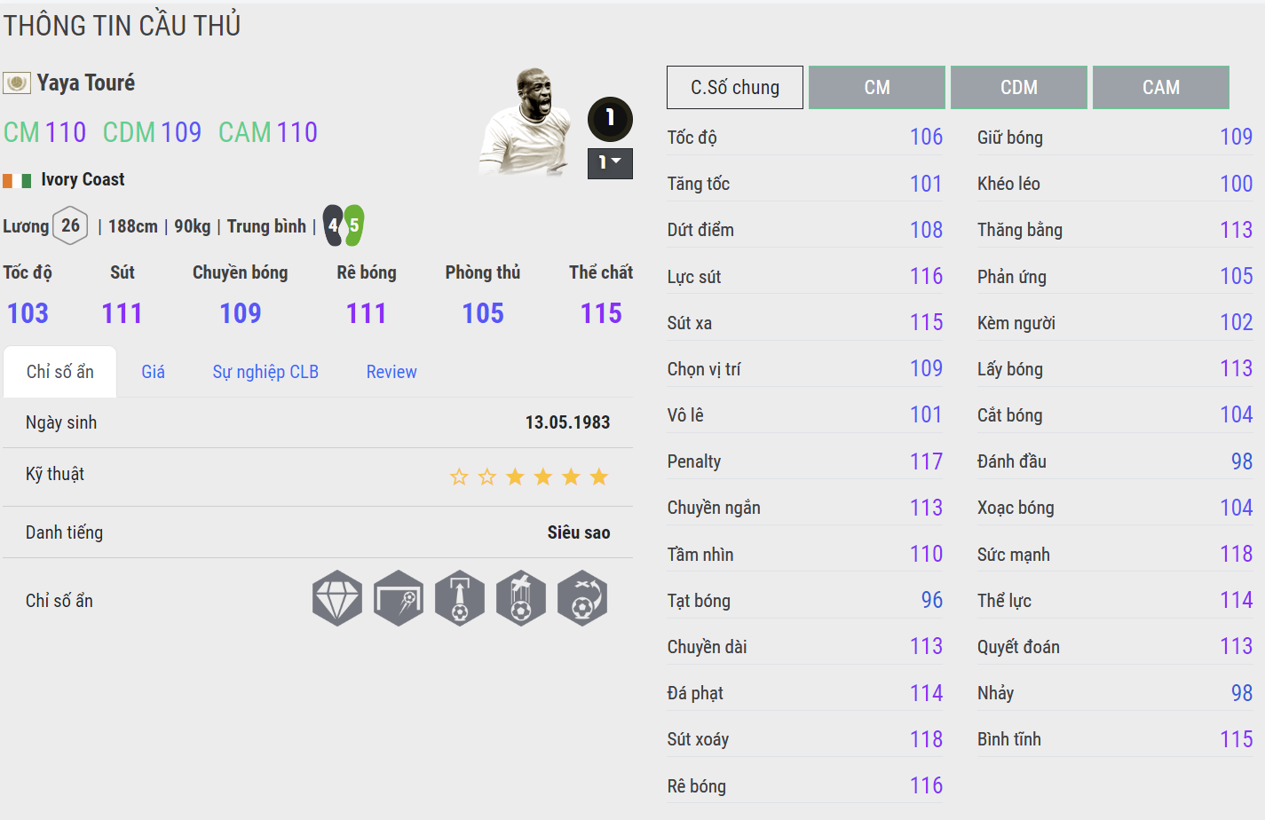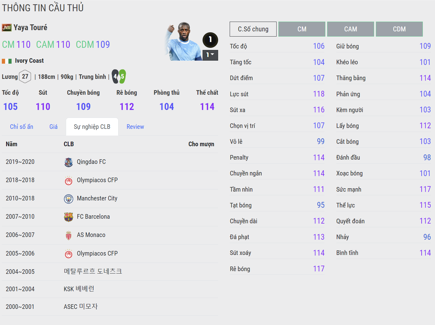 Yaya Toure đang được nhiều game thủ đánh giá rất cao ở meta hiện tại khi đang cho thấy sự phù hợp ở tuyến giữa của những team color hàng đầu như Man City, Barcelona, AS Monaco.