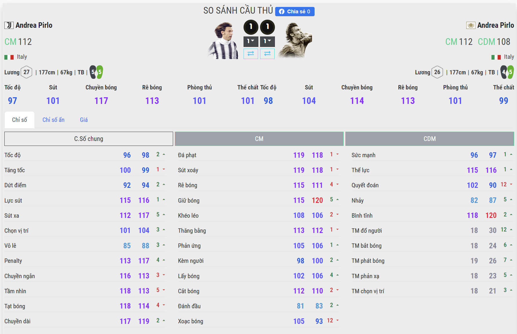 Mùa giải Juventus Ambassador (JVA) của Pirlo hiện đã ra mắt được một thời gian với bộ chỉ số không thua kém gì mùa giải ICON, thậm chí còn cho thấy những sự thay đổi và khác biệt rõ ở cả 2 mùa thẻ này. Vậy sau một khoảng thời gian trải nghiệm, đâu là mùa thẻ đáng dùng hơn với Pirlo.