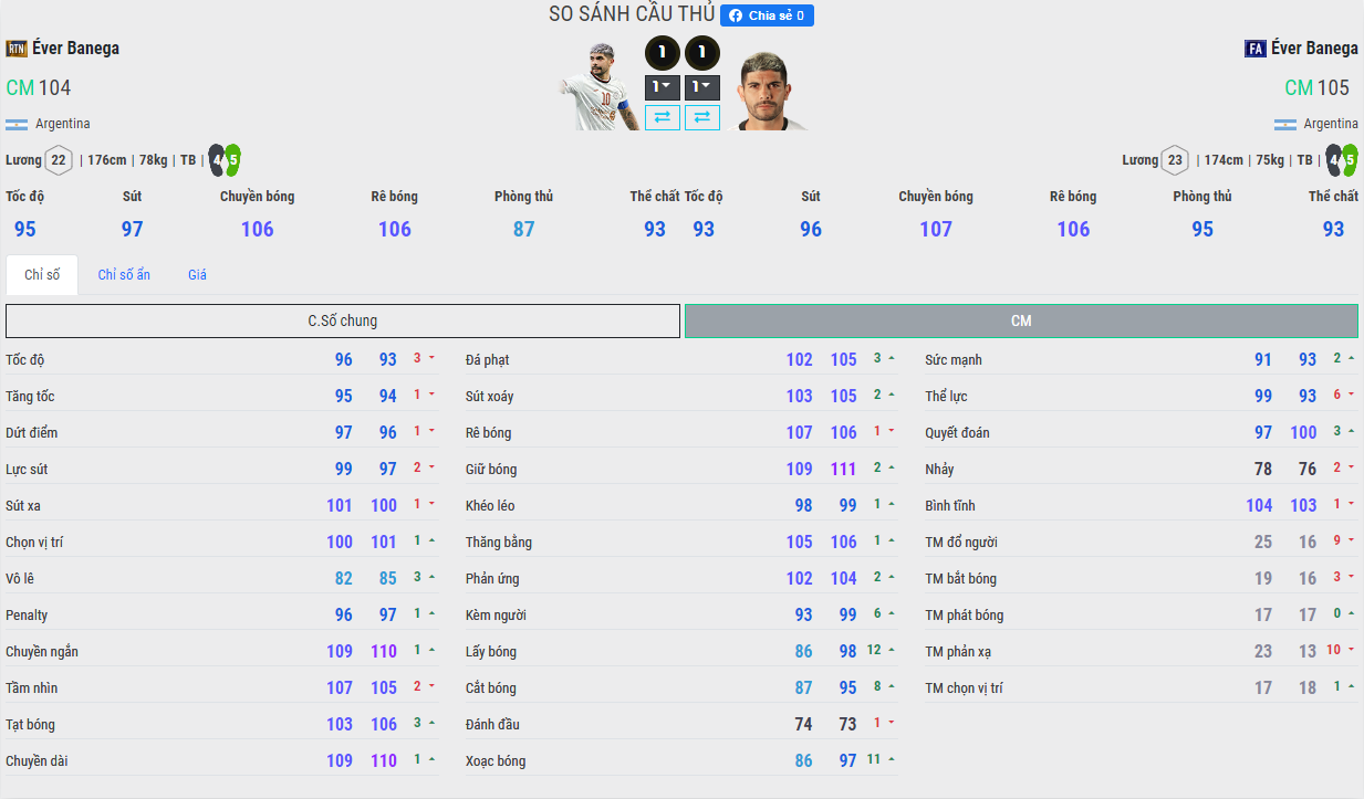 Hiện tại trong Fo4 thì Banega có hai mùa giải cao nhất cùng chỉ số Ovr là RTN và FA. Tuy vậy chỉ số ẩn của mùa FA nhìn "thích mắt" hơn hẳn, liệu rằng điều đó có giúp cho Banega FA vượt mặt được muafgiair mới ra hay không ? Dưới đây là những đánh giá của chúng tôi.