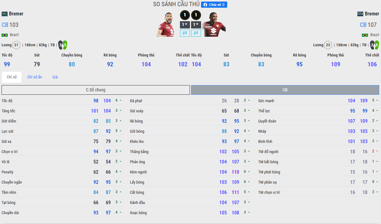 Breme là trung vệ mới nổi lên trong game khi cầu thủ này có được thể hình cùng tốc độ rất tốt, cực phù hợp trong meta hiện tại của game. Đặc biệt là Breme giúp giải quyết hai bài toàn nan giải là vị trí trung vệ của tuyển Brazil và CLB Juventus vốn nhiều năm nay chưa có được những cái tên thực sự đáng tin.