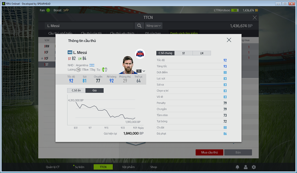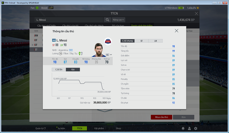 Bọ chét nguyên tử – Lionel Messi Trong FIFA Online 4, Messi là một cầu thủ nổi tiếng mà nhiều người đã , đang và muốn sử dụng. Mặc dù xét về mặt thể chất, Messi không được đánh giá quá cao với chiều cao chỉ vỏn vẹn 1m69 đã từng khiến Messi bị “thất sủng” trong FO3. Tuy nhiên với gameplay của FO4 những cầu thủ như Messi đã có nhiều đất diễn hơn với sự lắt léo, tốc độ tốt cũng như sự mềm mại trong cách chơi đã khiến Messi được tin tưởng hơn, ngay cả với những người chuộc cầu thủ có thể hình to cũng không dám xem thường “bọ chét nguyên tử” Messi. Gần đây, ngày càng nhiều người quan tâm đến thẻ mùa giải NHD với mức giá rẻ. Nếu bạn so sánh thẻ mùa giải TOTY với thẻ mùa giải NHD của Messi thì có thể thấy chỉ số của thẻ TOTY cao hơn nhiều so với thẻ NHD. Nhiều người cảm thấy phân vân trong việc lựa chọn cầu thủ chỉ số thấp giá rẻ hơn hay chấp nhận chi nhiều cho TOTY để đem đến sự chất lượng hơn. Hãy cùng so sánh 2 thẻ mùa giải này để đưa ra quyết định. Thẻ mùa giải NHD có lợi thế với mức lương 16, với sự vượt trội về mặt tốc độ và sự thăng bằng. Messi NHD có nhiều lợi thế trong việc giữ thăng bằng, xâm nhập tốc độ cao, xuyên phá hàng phòng ngự thích hợp cho vị trí hành lang cánh. Trong khi đó thẻ mùa giải TOTY có sự đồng đều về chỉ số, với sức mạnh lên tới 80 và khả năng dứt điểm lên tới 96 cho thấy khả năng kết thúc những pha dứt điểm của thẻ TOTY là tốt hơn so với NHD. Thẻ TOTY có khả năng chơi ở nhiều vị trí hơn trên hàng tấn công. Lý do cho việc so sánh Messi NHD và Messi TOTY Messi TOTY chắc chắn có lợi thế khi nhìn vào bộ chỉ số của cả 2 thẻ mùa giải. Tuy nhiên có những chi tiết phải cân nhắc như mức lương, giá cả cũng như vóc dáng khi ở trên sân.Trước hết, Messi TOTY có mức lương cao hơn Messi NHD là 2. Với việc phải cân bằng mức lương tổng thể của cả đội bằng cách tiết kiệm số lương cho từng vị trí thì giảm bớt 2 cũng là điều cần thiết để những vị trí còn lại có thêm lương cho những cầu thủ chất lượng hơn. Mức giá của cả 2 cũng là không thể bỏ qua khi mức giá của Messi NHD là 1tr8 bp thấp hơn khá nhiều so với mức giá 43tr bp của Messi TOTY. Cùng với việc thể hình “Sức khoẻ” và thăng bằng 96 sẽ khiến Messi NHD khó bị đẩy ngã hơn Messi TOTY với thể hình nhỏ và chỉ số thăng bằng thấp hơn. Messi TOTY có lợi thế về mặt chỉ số từ chuyền ngắn, tầm nhìn sút xoáy, tăng tốc, phản ứng, sức mạnh, thể lực,sút xa, chọn vị trí, sút phạt, chuyền dài, giữ bóng … so với việc Messi NHD có nhiều chỉ số thấp hơn, khiến cho chỉ số chung thấp hơn.
