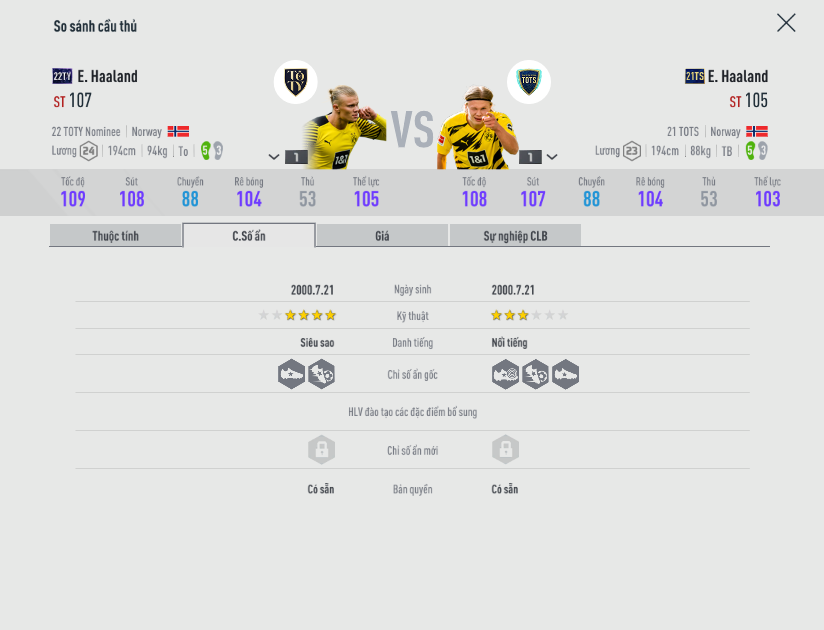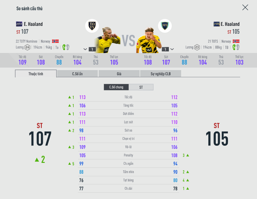 Nếu chỉ số hai mùa là tương đương nhau thì trên thực tế lại cho ta kết quả khá khác nhau, độ sát thương trong các pha sút của Haaland 22TY là tốt hơn hẳn, khách quan mà nói có thể hiện này mùa giải mới 22TY-N đang được buff hiệu ứng mới ra.