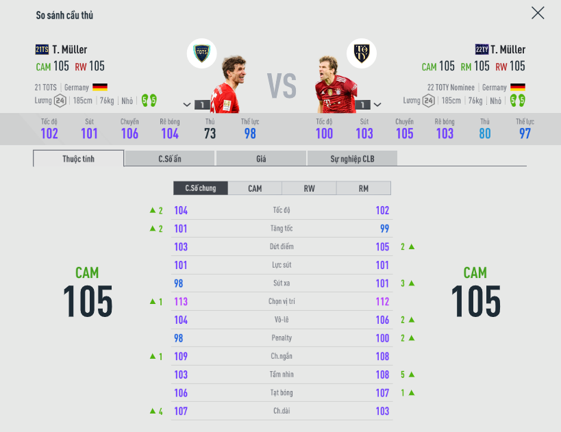 So với 22TY thì mùa 21TS nhanh hơn chút ít, điều này là tương đối khó nhận ra nhưng nếu bạn để Muller 21TS đá CF hoặc CAM trong sơ đồ 42211 mà gắn kỹ năng xâm nhập thì sẽ thấy Muller 21TS tăng tốc nhanh hơn và tạo áp lực tốt hơn trong các đường chọc khe