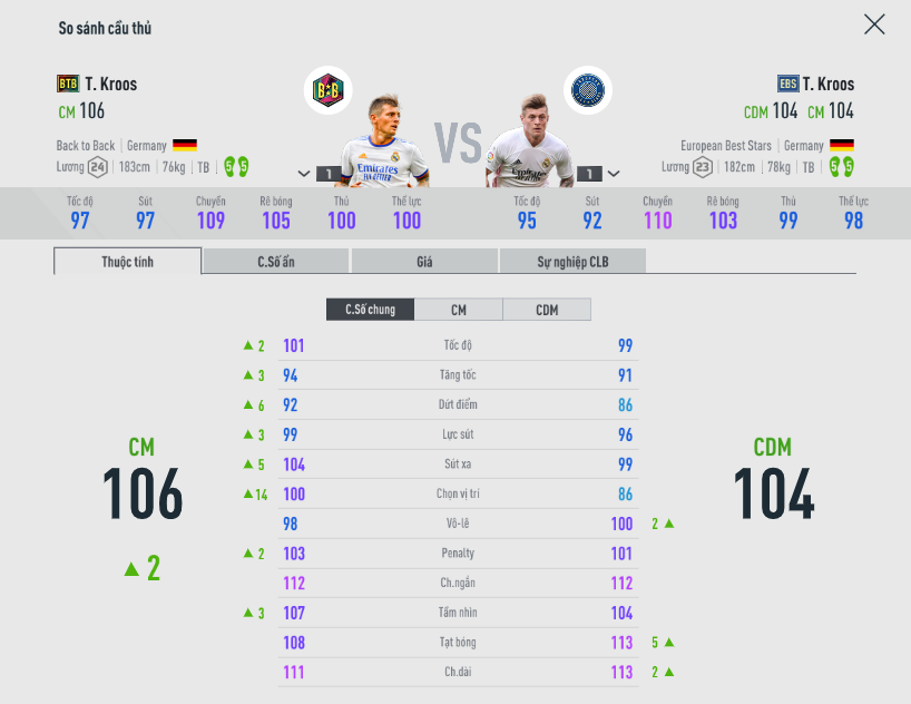 Nếu để chọn lựa, thì EBS với mức lương rẻ hơn 1 đơn vị vẫn là cái tên ổn hơn cả, Kroos không mạnh về tốc độ mà thiên về AI nhiều hơn. Vị trí thích hợp nhất vẫn là CDM hoặc CM di chuyển quanh vòng tròn giữa sân.