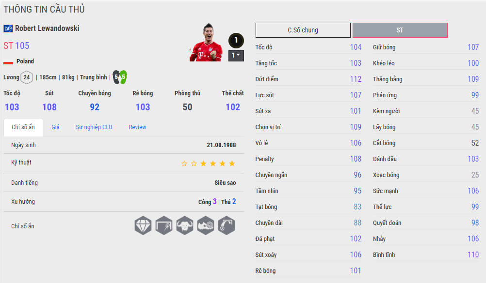 Kinh nghiệm : nếu có thể lựa chọn thì hãy cố gắng tìm kiếm những tiền đạo có "sút xoáy" để tăng hiệu suất ghi bàn...lewandowski, ronaldo là những cầu thủ sút rất tốt trong GLXH.