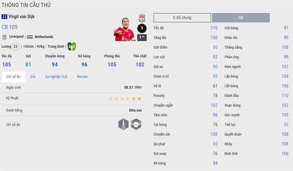 Van Dijk 21UCL là một trung vệ khá hoàn hảo trong GLXH