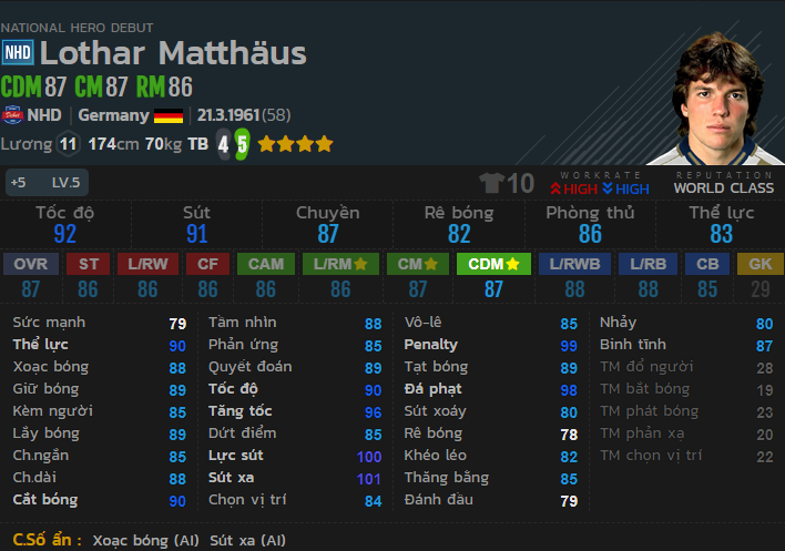 Với tốc độ cao, tăng tốc nhanh, khả năng phòng ngự cực rát và khả năng sút xa rất tốt. Matthaus xứng đáng là cái tên NHD +5 đáng lưu tâm ở vị trí tiền vệ.