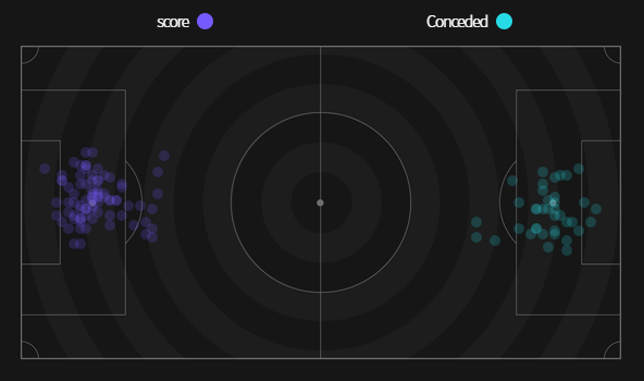 Cự ly ghi bàn trung bình 15m