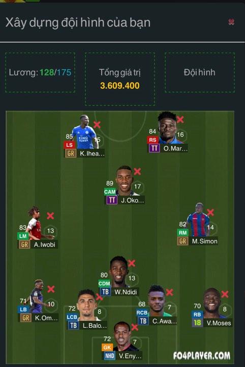Các bạn có thể thử nghiệm các đội hình bằng cách sử dụng tính năng của website Fo4player.com