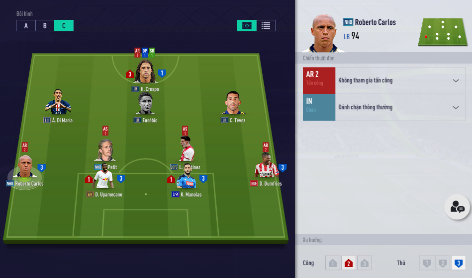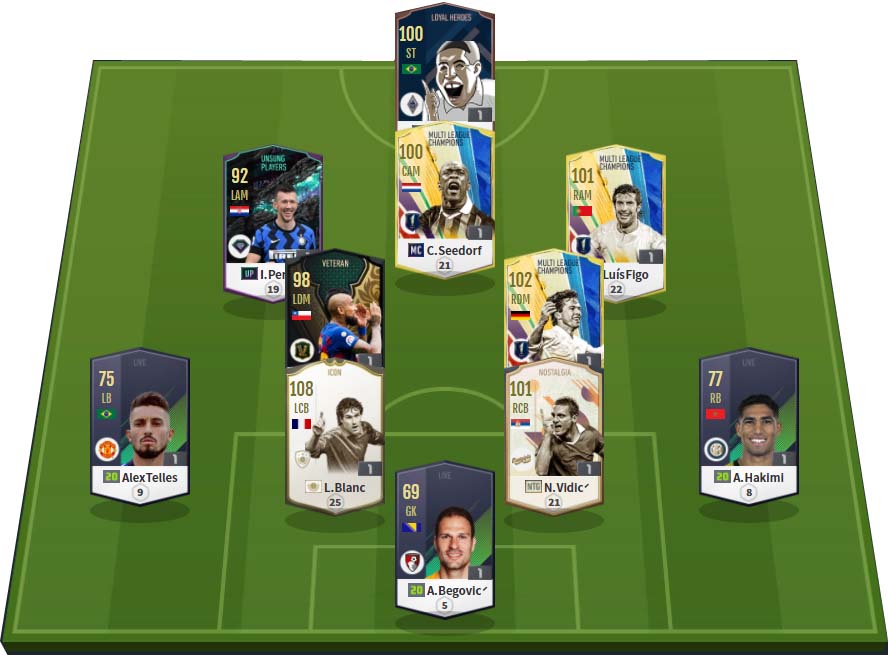 Xuất phát với sơ đồ 4231 với 3 cầu thủ chơi tiền vệ tấn công CAM. Một sức ép rất lớn ở khu vực trung lộ sẽ dồn lên phía phần sân đối phương, khi cả cầu thủ là Perisic, Figo, Seedorf sẽ đóng vai trò như ba khẩu đại pháo phía sau làm ngòi nổ cho các đợt tấn công. Bạn nên tích cực sút xa khi sở hữu đội hình này