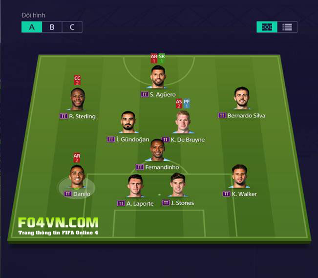 Do đây là đội bóng thực hiện nhiều vụ chuyển nhượng đình đám, trong FIFA ONLINE 4, Tôi khuyến khích các bạn sử dụng thẻ mùa giải TT – Top Transfer của các cầu thủ Man City với chỉ số tổng quát rất đẹp.