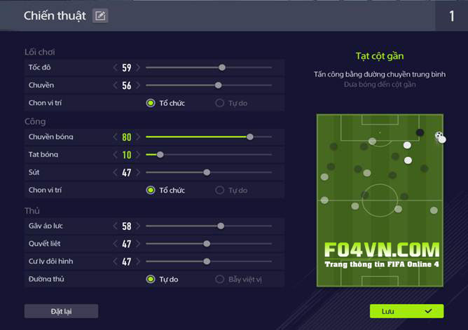 Chọc khe cho 2 cánh chạy “trần lực” , nếu đi bóng qua được hv cánh thì 1 cú ZS cực mạnh sẽ rất dễ thành bàn, trường hợp hậu vệ cánh quá cứng thì bạn chuyền ngược lại cho tuyến giữa để sút xa hay ban bật tiếp nhé