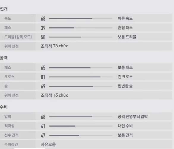 Một xu hướng công thủ 3/3 cho hai hậu vệ cánh và 3 cầu thủ trên hàng tiền vệ công. Thể hiện ý đồ tấn công cánh và phòng thủ số đông, thậm chí hai CDM với xu hướng 1/3 và giữ vị trí.