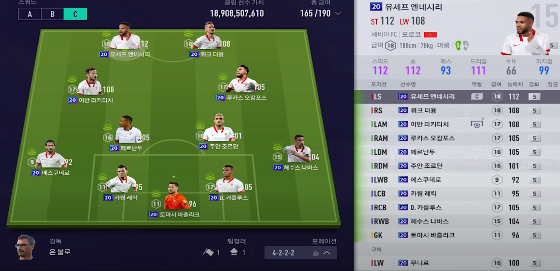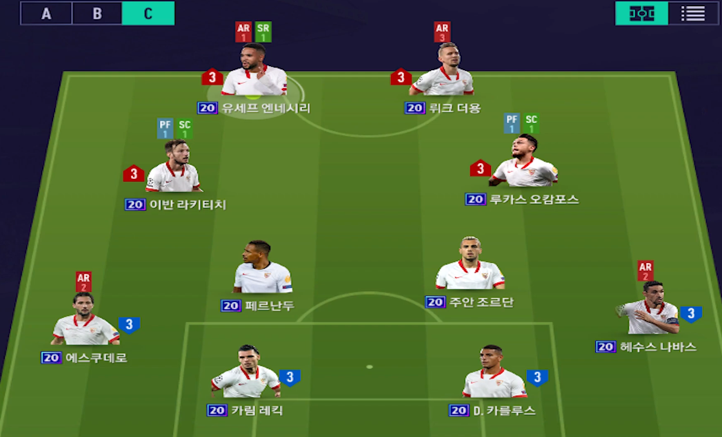 Khác với sơ đồ 4-2-2-2 thuần thúy, bạn cần chú ý team Sevilla sử dụng hai LAM và RAM. Do họ không có đủ cầu thủ chạy cánh chất lượng, ngoài cái tên Ocampos đang thi đấu thăng hoa, và chỉ số khá ổn cho một tiền đạo cánh.