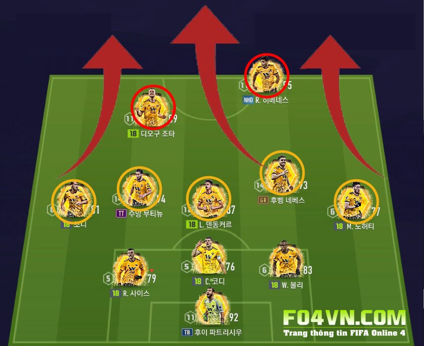 Sơ đồ chiến thuật nên dùng cho các cầu thủ Wolver chính là sơ đồ 5-1-2-2 như hình.