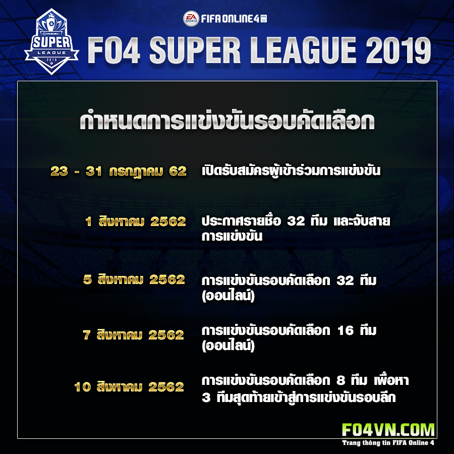 Mới đây, fanpage chính thức của FIFA Online 4 server Thái Lan đã công bố vòng tuyển chọn EACC Winter 2019. Mục đích là để tìm ra đại diện thực sự có tài năng để tham gia giải EACC Winter 2019.