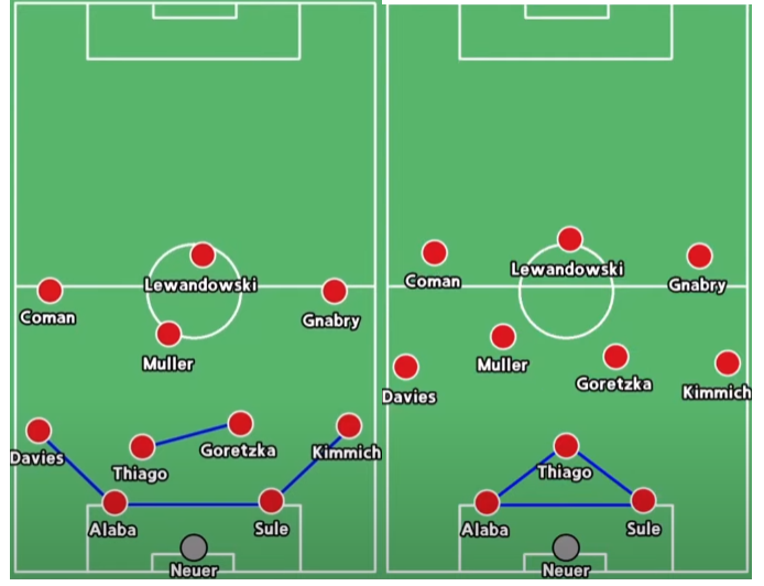 Nhưng giờ đây khi bạn để "vị trí giữa hai hậu vệ" cho CDM bạn sẽ thấy cầu thủ này gần như rất ít dâng cao. Và luôn có xu hướng lùi xuống khi phòng ngự. Điều này khá giống với vai trò của Thiago của Bayern Munich thời gian 19/20 dưới sự dẫn dắt của Hansi Flick.