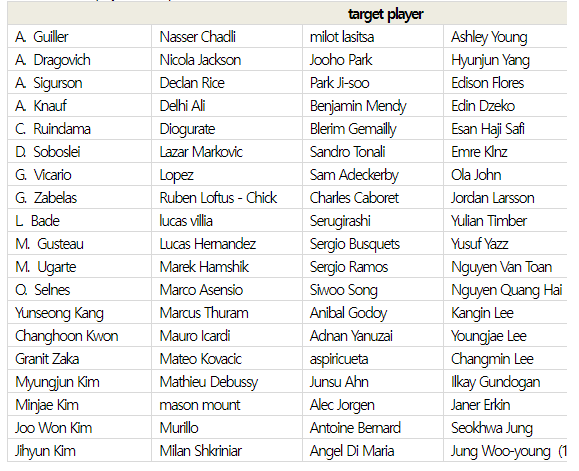 3. Cập nhật mặt cho 7 cầu thủ người Hàn Quốc.