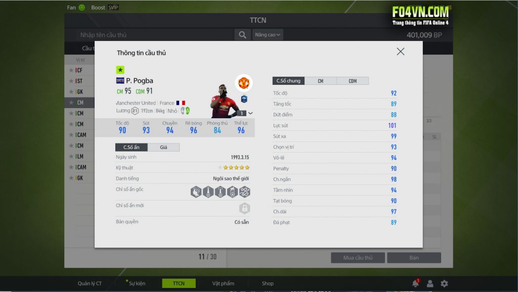 Tuy nhiên vào lần bảo trì gần nhất 22/2/2019, Pogba TOTY 19 đã âm thầm xuất hiện trong game trong khoảng thời gian cực ngắn, sau đó lại biến mất bí ẩn. Rất may là đã có bạn nhanh tay chụp được những hình ảnh về tiền vệ trung tâm rất được mong chờ này. Với bộ chỉ số hoàn hảo, chiều cao 1m92 hơn 1cm so với các mùa khác. Và đặc biệt là bộ chỉ số ẩn rất phù hợp với một tiền vệ tấn công.