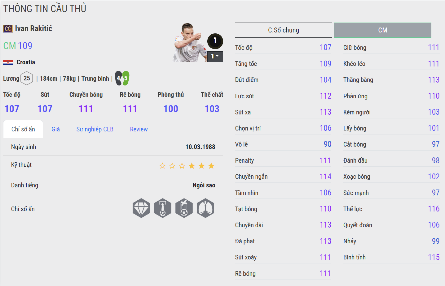 Ivan Rakitic được đánh giá là một tiền vệ trung tâm rất đáng dùng ở thời điểm hiện tại. Anh sở hữu khả năng di chuyển khá ổn, có phần nhanh nhẹn và hiệu quả chứ không hề cho cảm giác chậm chạp.