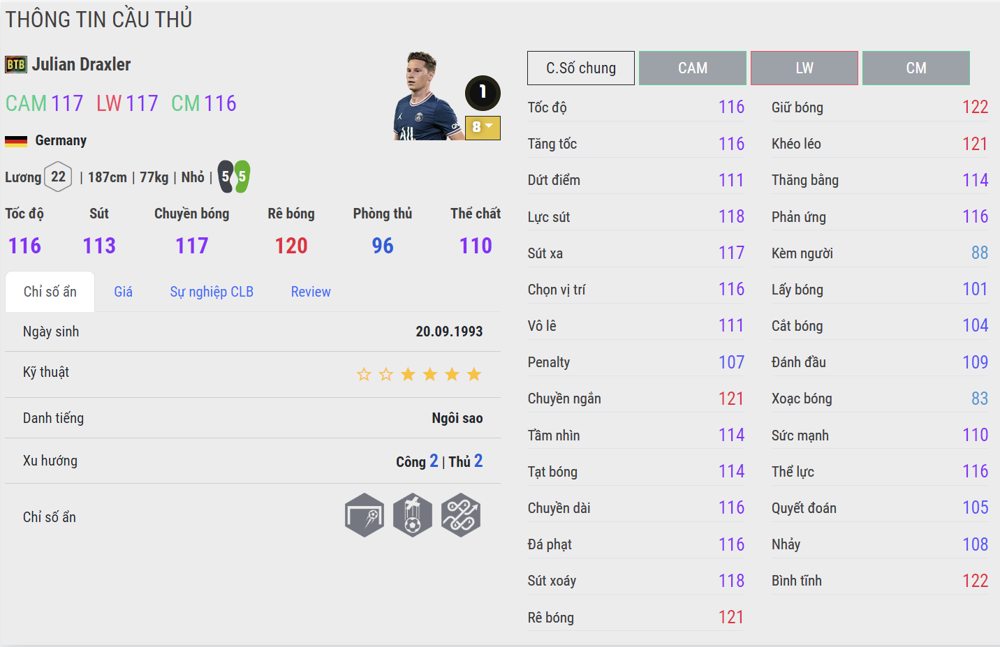 Khả năng dứt điểm của Draxler là rất tốt bằng cả 2 chân. Draxler sút rất hiệu quả trong vòng cấm với 2 chân 5 sao và khả năng sút có độ chính xác tốt. Không chỉ có vậy, kỹ năng ZD, sút xa của Draxler đem đến hiệu quả tốt.