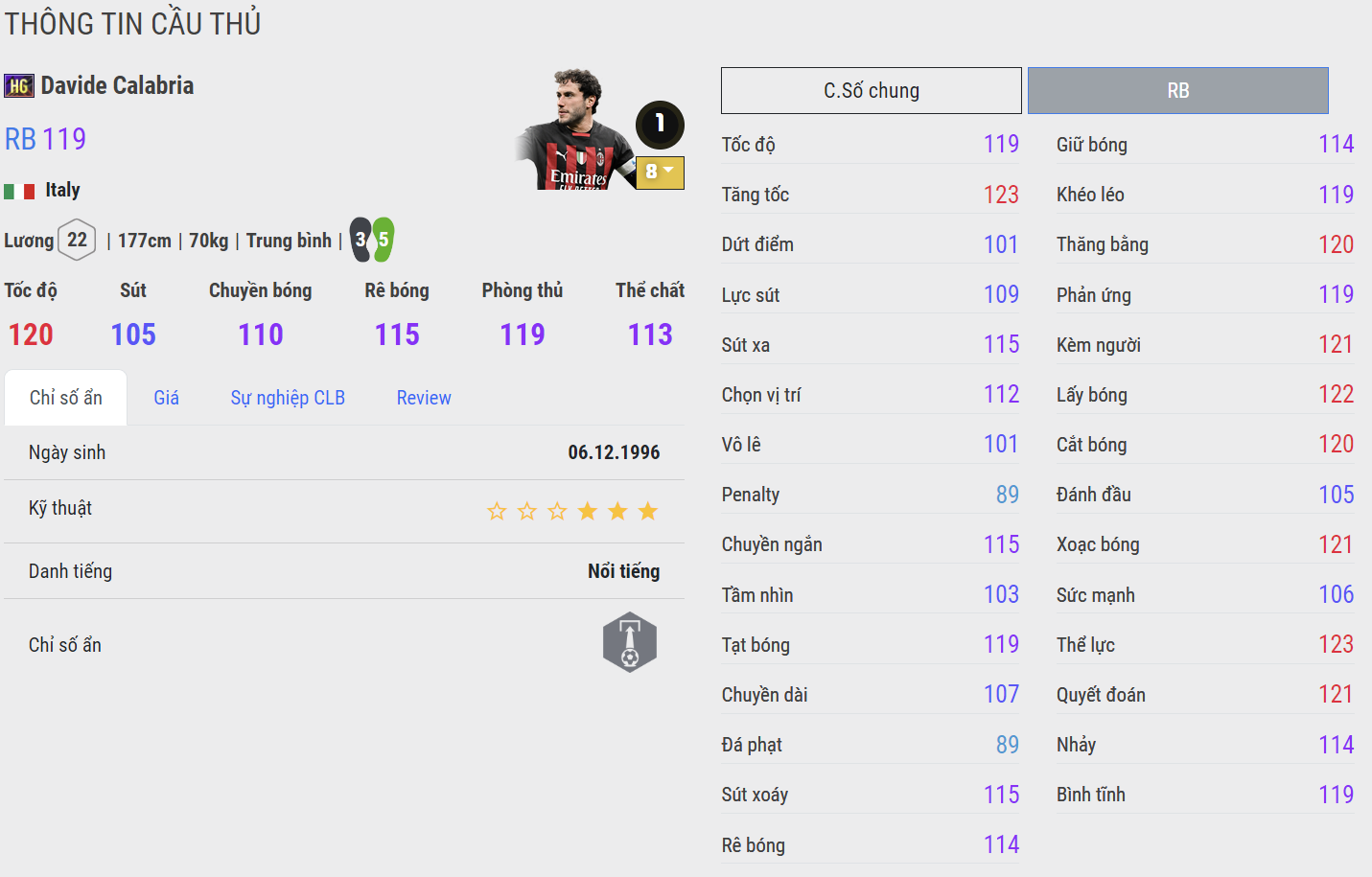 Khả năng tì đè của Calabria khá ổn, cầu thủ người Ý có thăng bằng tốt, thể hình đầm, cảm giác về khả năng tranh chấp rất hiệu quả khi không ngán va chạm với bất kì cầu thủ nào.