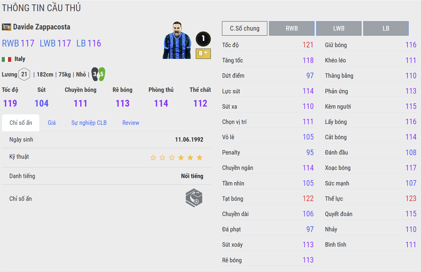 Bộ kỹ năng chuyền bóng của Zappacosta cực kì phù hợp với meta hiện tại khi kỹ năng chuyền ngắn, phối hợp, chuyền dài được cải thiện rất nhiều. Ngoài ra, khả năng tạt bóng của Zappacosta là rất tốt, đường bóng xoáy, điểm rơi chính xác và hiệu quả. Không chỉ chuyền tốt, Zappacosta còn có khả năng sút xa khá ổn và sẽ khiến nhiều HLV bất ngờ.