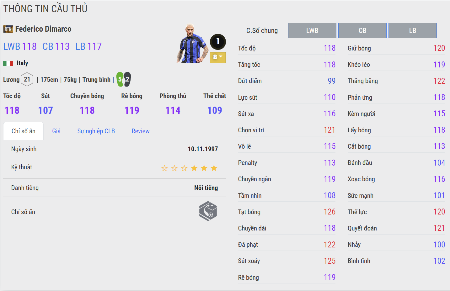Khả năng cắt bóng của Dimarco là khá ổn, không quá xuất sắc nhưng có thể thấy rõ được hiệu quả trong các tình huống di chuyển đánh chặn, tranh chấp trực diện cho đến những pha tắc bóng đều đem lại hiệu quả rất ổn. Kỹ năng phòng ngự tốt giúp Dimarco hoàn thiện hơn ở khả năng chơi bóng ở hành lang trái và đang là một trong những cái tên đáng dùng thời điểm hiện tại.