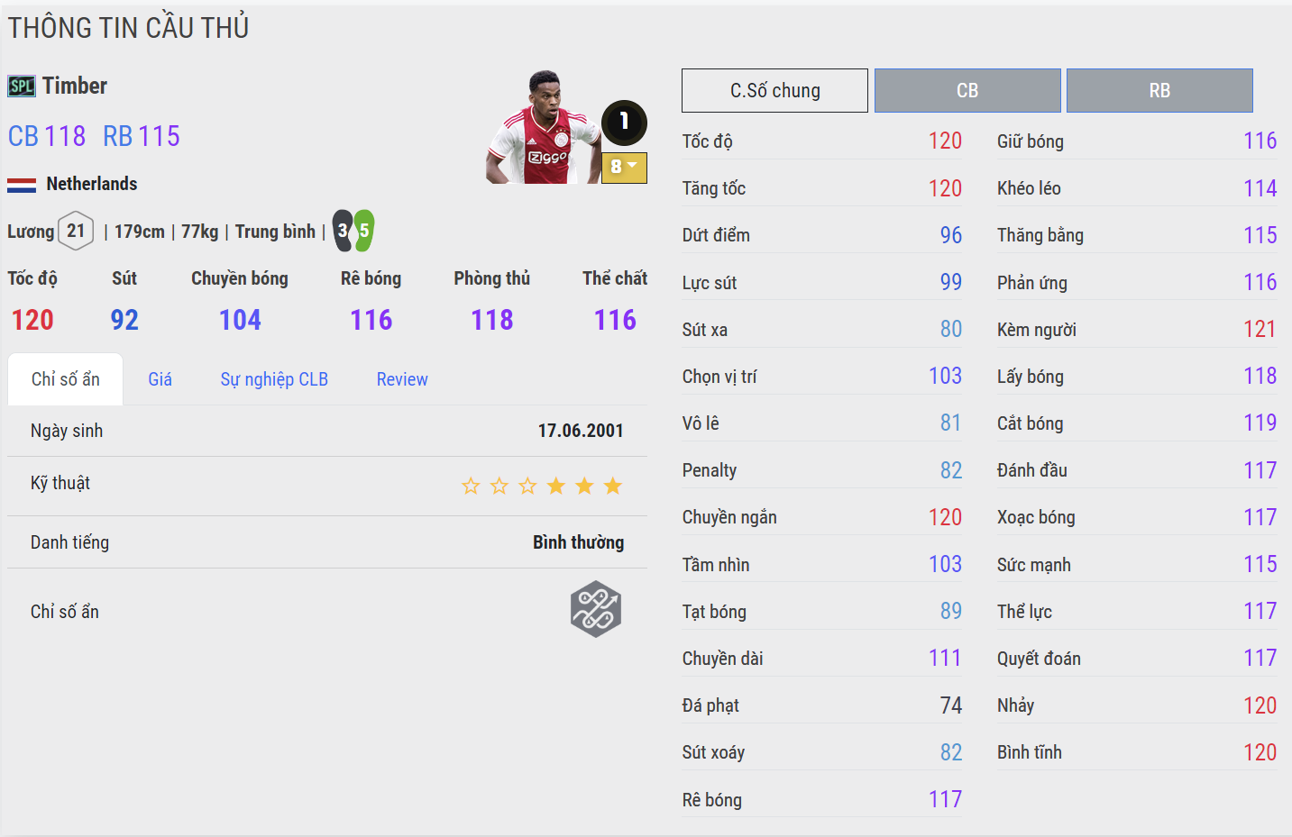 Điểm nổi bật đầu tiên có thể kể đến chính là ở tốc độ của Timber cho cảm giác khá nhanh nhẹn, thanh thoát và cho thấy khả năng di chuyển linh hoạt. Khả năng di chuyển đua tốc phòng ngự của Timber là rất tốt, ngoài ra khả năng leo biên của cầu thủ người Hà Lan cũng cho thấy rất nhiều hiệu quả.