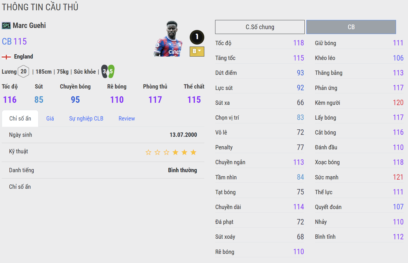 Tuy vậy với việc xả số lượng lớn thẻ SPL +8, Guehi đang dần trở thành cái tên được săn đón hàng đầu và đánh giá rất cao về giá trị sử dụng. Thể hình to khỏe nhưng Guehi lại có cho mình tốc độ rất tốt cùng khả năng bứt tốc không thua kém gì những trung vệ quốc dân.