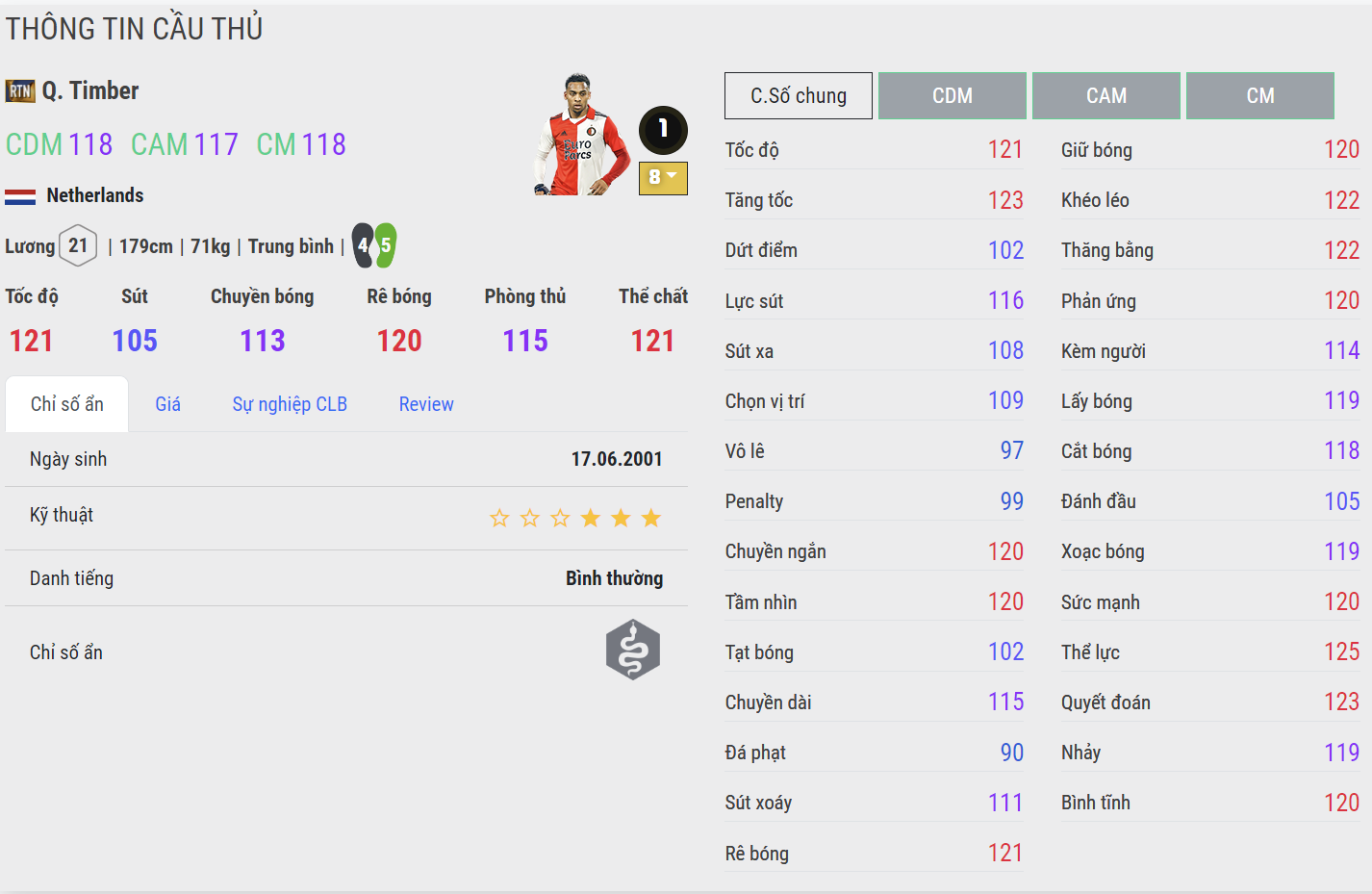 Timber RTN hiện đang được nhiều game thủ đánh giá cao ở phiên bản RTN +8 bởi sự đa năng khi chơi tốt ở nhiều vị trị và hiệu quả lối chơi tốt. Điểm mạnh đầu tiên có thể kể đến chính là tốc độ. Cầu thủ người Hà Lan sở hữu tốc độ cực kì tốt, khả năng di chuyển nhanh nhẹn và bộ kỹ năng đua tốc hiệu quả trong các tình huống tấn công lẫn phòng ngự.