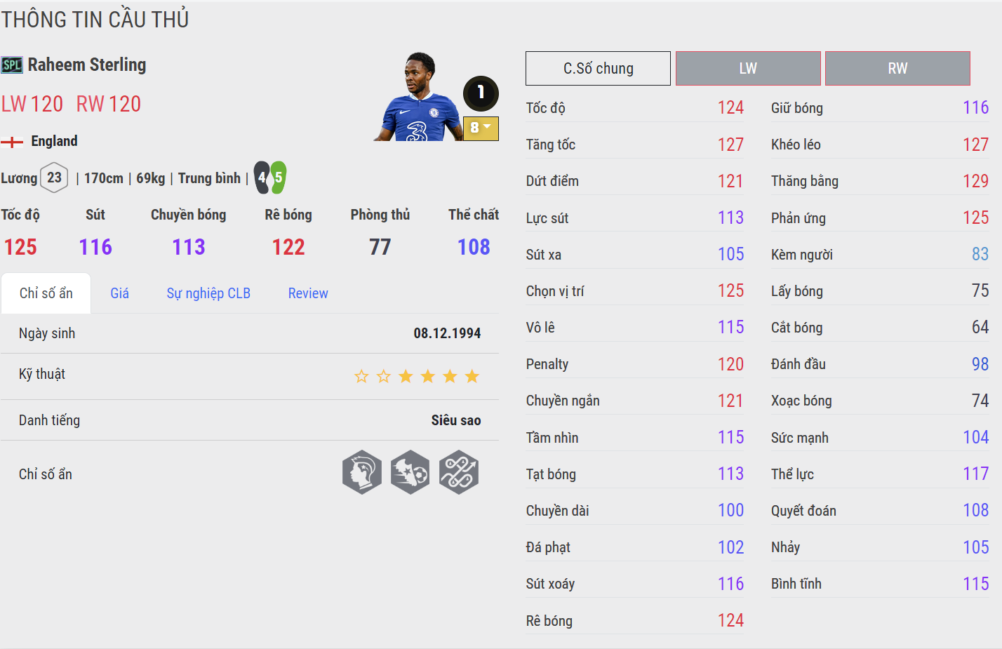 - Ngày 13 tháng 7 năm 2022, Sterling ký hợp đồng với Chelsea, có thời hạn 5 năm với mức phí 47,5 triệu bảng.