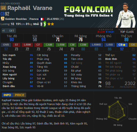 Ở mùa giải GR, Varane được đánh giá như là một trong những trung vệ xuất sắc nhất bởi sự toàn diện cũng như độ hiệu quả trong game. Vậy, Varane GR thể hiện trong game thế nào, hãy cùng FO4VN.COM tìm hiểu ở bài viết dưới đây.