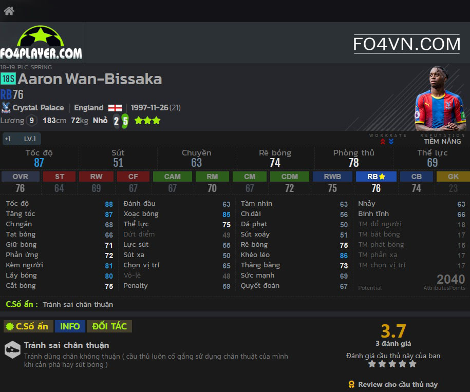 Việc chuyển đên Manchester United khiến Wan-Bissaka được nhiều người chơi FIFA Online 4 để mắt tới hơn. Và hôm nay hãy cùng FO4VN.COM tìm hiểu về Wan-Bissaka 18S trong bài viết dưới đây.