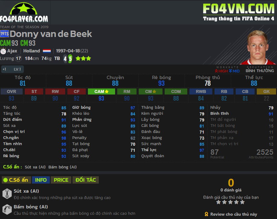 Các bạn có thể tham gia đánh giá và chấm điểm cho Van De Beek tại fo4player.com