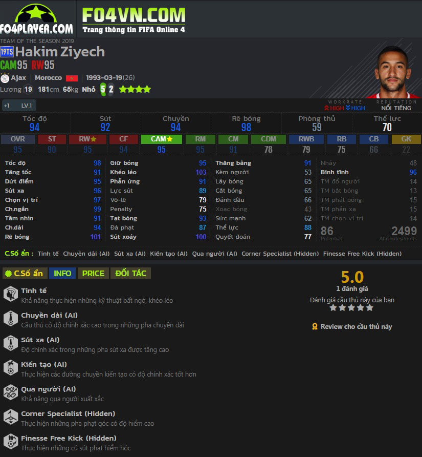 Tham gia đánh giá và chấm điểm cho Ziyech tại fo4player.comVideo đánh giá Ziyech trong game
