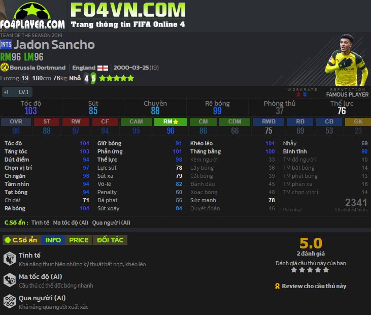 Vậy, hôm nay hãy cùng FO4VN.COM tìm hiểu về Sancho 19TS để hiểu thêm về cầu thủ này cũng như độ hiệu quả của chính anh trong game.