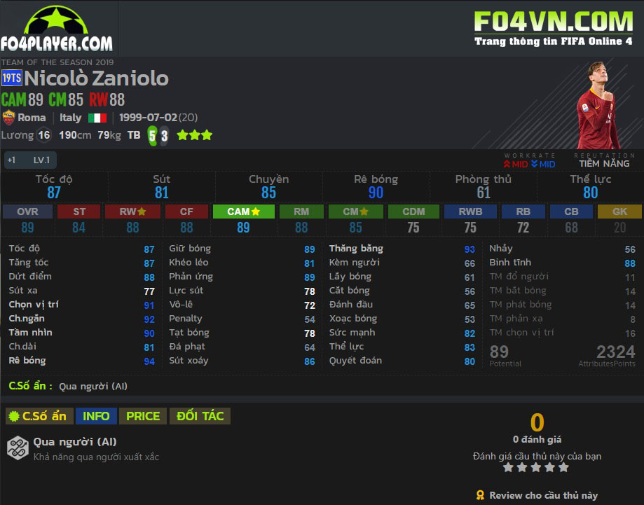 Với màn trình diễn xuất sắc màu giải vừa qua thì Zaniolo đã được bình chọn và nằm trong danh sách những cầu thủ thi đấu xuất sắc nhất mùa giải. Vậy, Zaniolo 19TS có những điểm nổi bật nào? Hãy cùng FO4VN.COM tìm hiểu ở bài viết dưới đây.