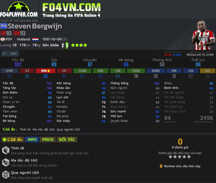 - Tốc độ : Bergwijn di chuyển rất nhanh. Đặc biệt là khi có thêm ma tốc độ khiến anh gần như rất khó bị bám đuổi một khi đã vượt qua. Gia tốc di chuyển nhanh của anh khiến những pha dốc bóng của anh thực sự đáng chú ý nơi hành lang cánh.
