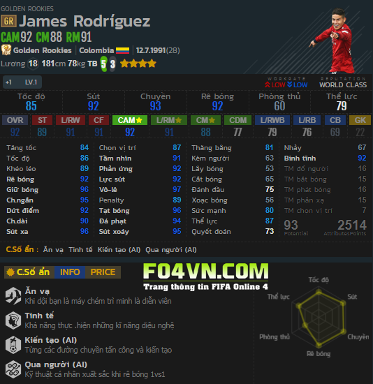 - Lương : Mức lương 18 để đầu tư cho một tiền vệ công như James là khá cao. Có lẽ chỉ phù hợp với những ai thích trải nghiệm cầu thủ