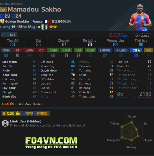 Sakho là mẫu trung vệ cao to, sử dụng sức mạnh và khả năng tắc bóng tốt làm cốt lõi để phòng ngự. Hãy cân nhắc thật kỹ lối đá của bản thân và đem anh chàng cầu thủ này về để trải nghiệm nhé.