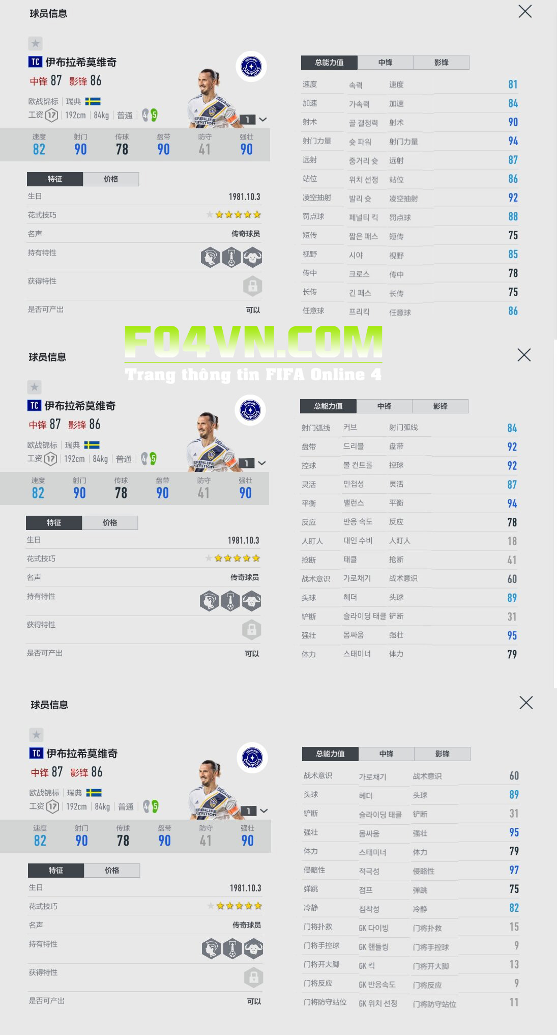 Z.Ibrahimovic - Chỉ số trong game