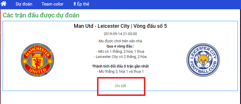 Hiển thị thời gian dự kiến dự đoán trận đấu đó