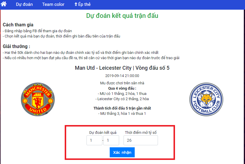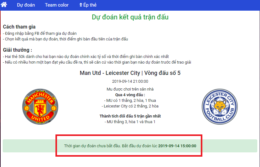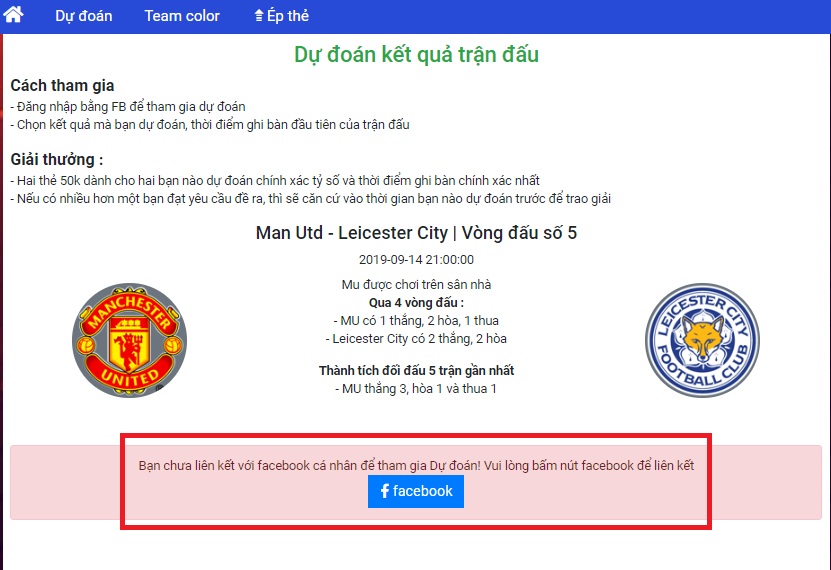 Tính năng này yêu cầu người chơi đăng nhập Facebook để tham gia. Sau khi đăng nhập, bảng hiển thị trận đấu cũng như ô dự đoán sẽ được mở ra.
