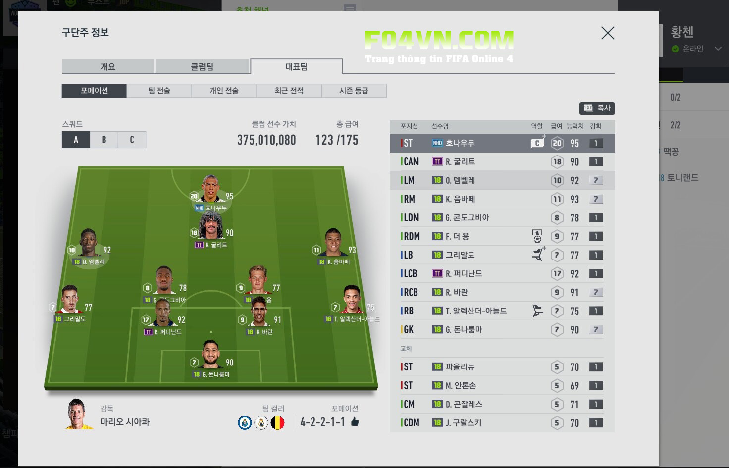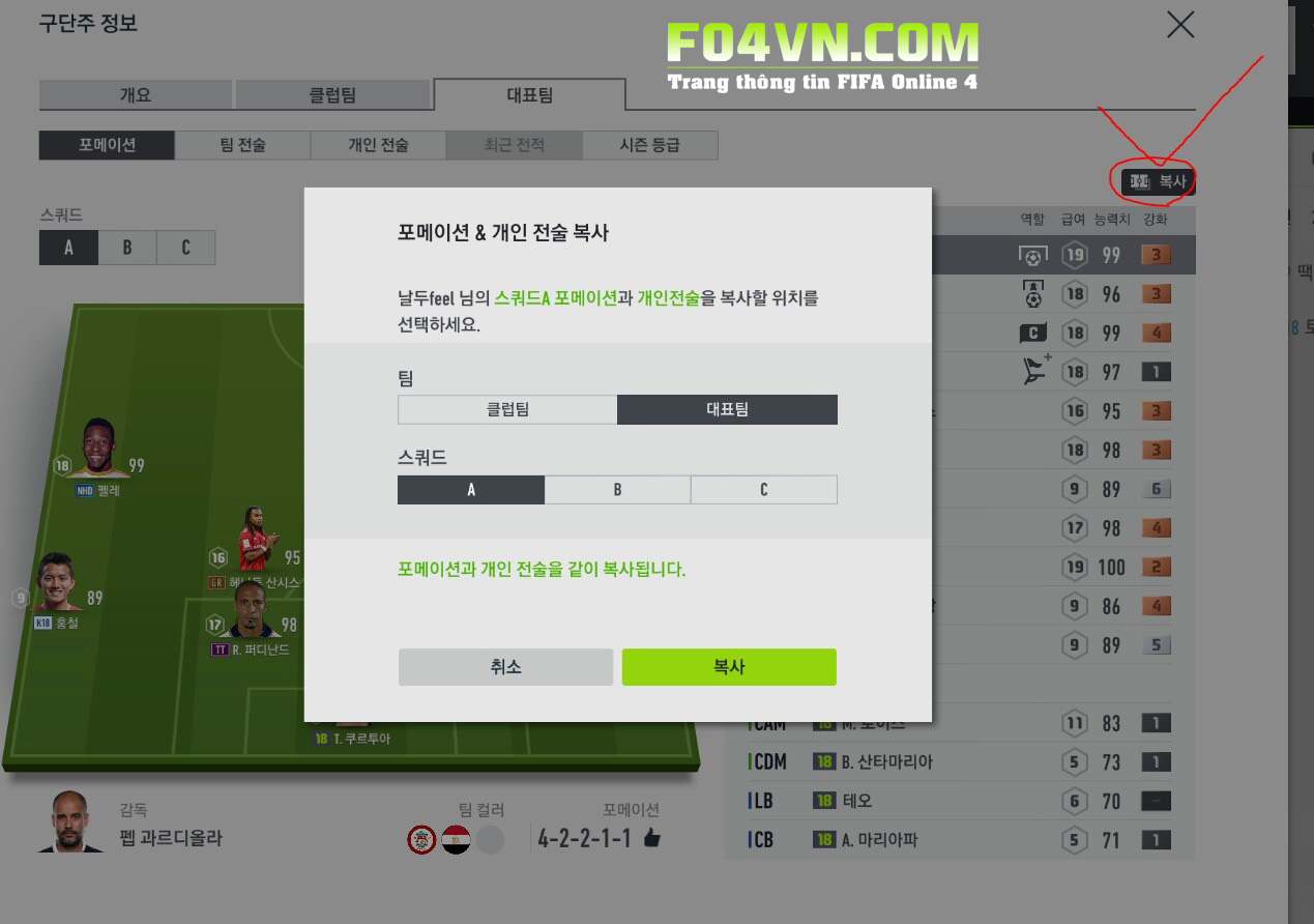 Ở phần chiến thuật, cũng sẽ hiện đủ cả 3 chiến thuật A,B,C thay vì chỉ một chiến thuật mà người chơi đang sử dụng như FIFA Online 3.